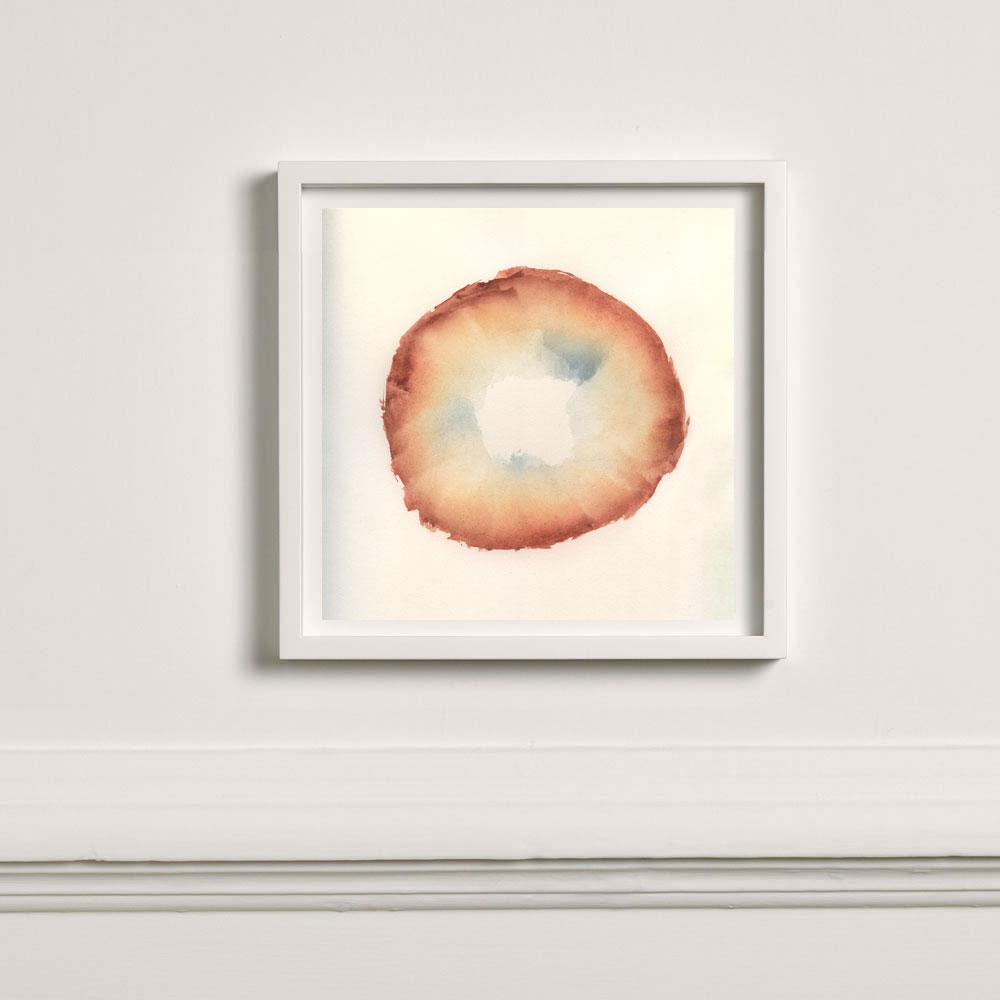 The Biomorphs and Blooms series features painted abstract Biomorphic shapes in shades of terracotta and subtle accents of watery blue.  These pieces easily lend themselves to modular grid formations.