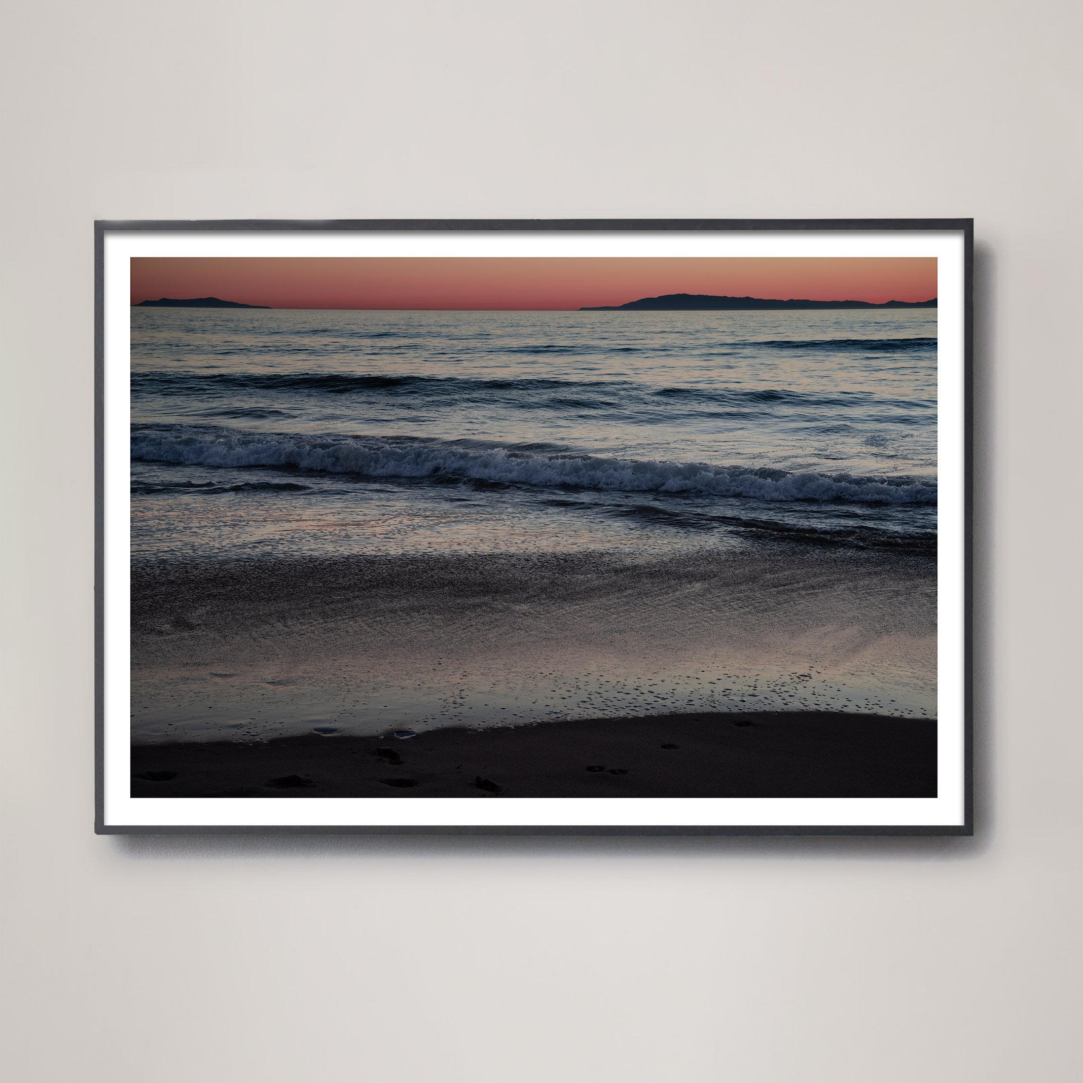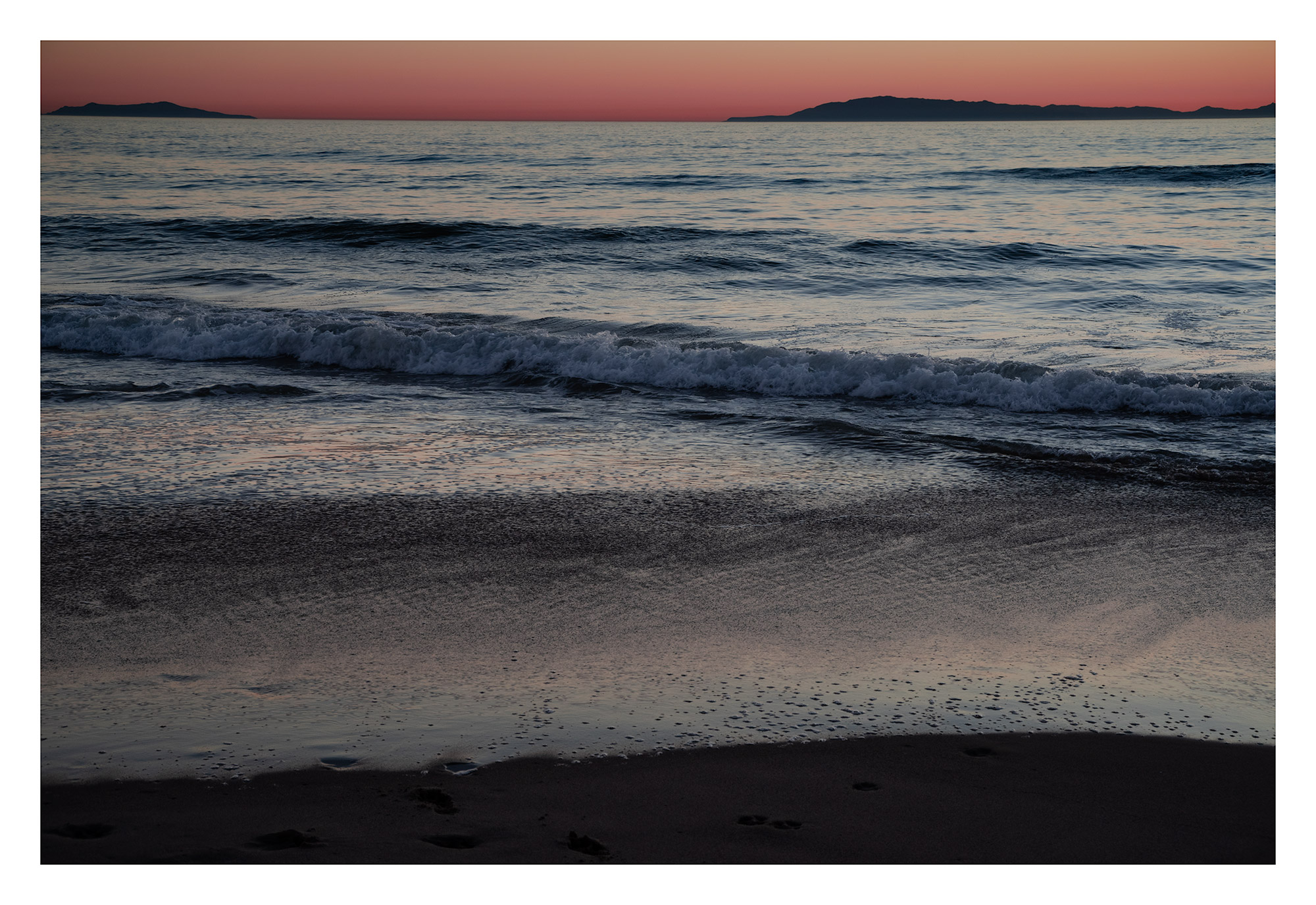 An otherwordly coastal view at Dusk with the Channel Islands tracing a silhouette in the background. From Mark Frohman’s series of vignettes captured along the coasts of Ventura and Santa Barbara County.