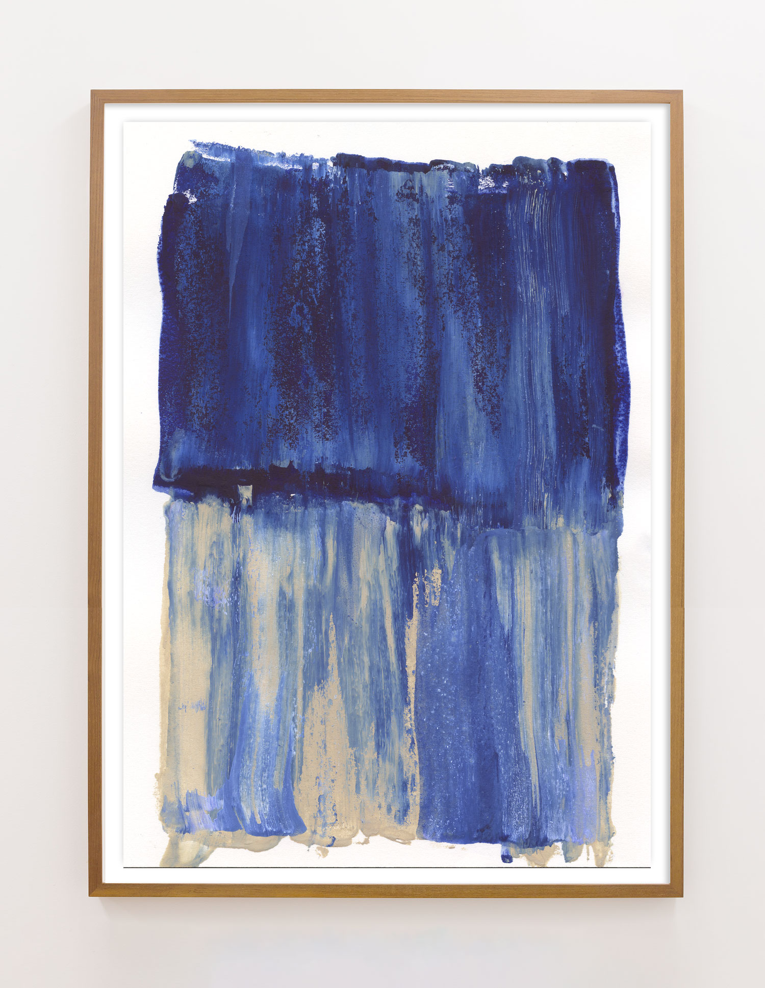 Minimal but highly textured abstract color fields with soft, washy tones of rich blue and earthy neturals.
